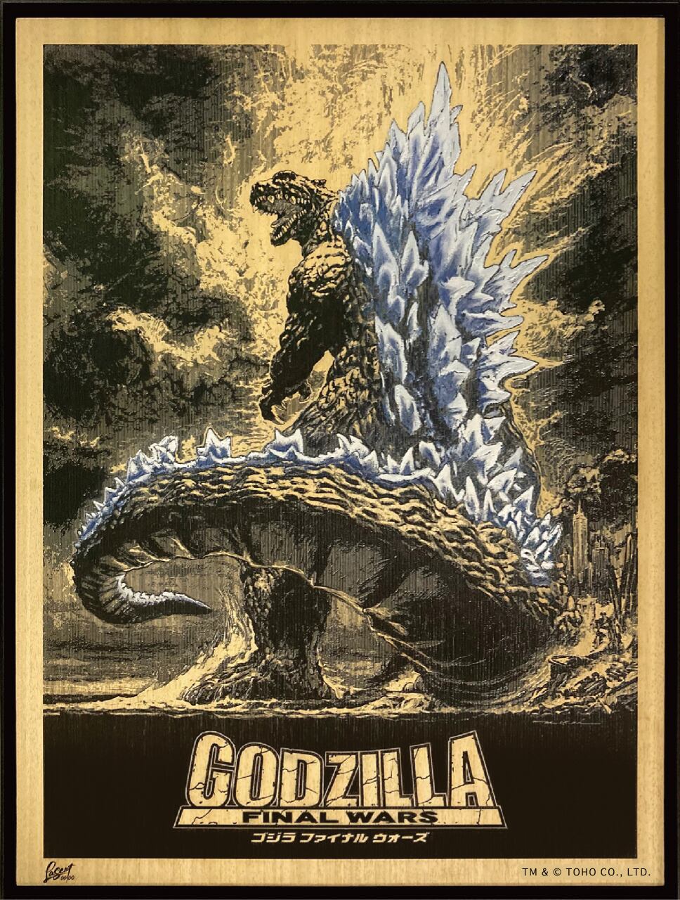 生賴範義氏が描いた映画ポスターイラストである2004年公開『ゴジラ FINAL WARS』をデジタル加工し「ゴジラ」の持つ力強さ、原画の特徴でもある油絵風の画法を表現しました。