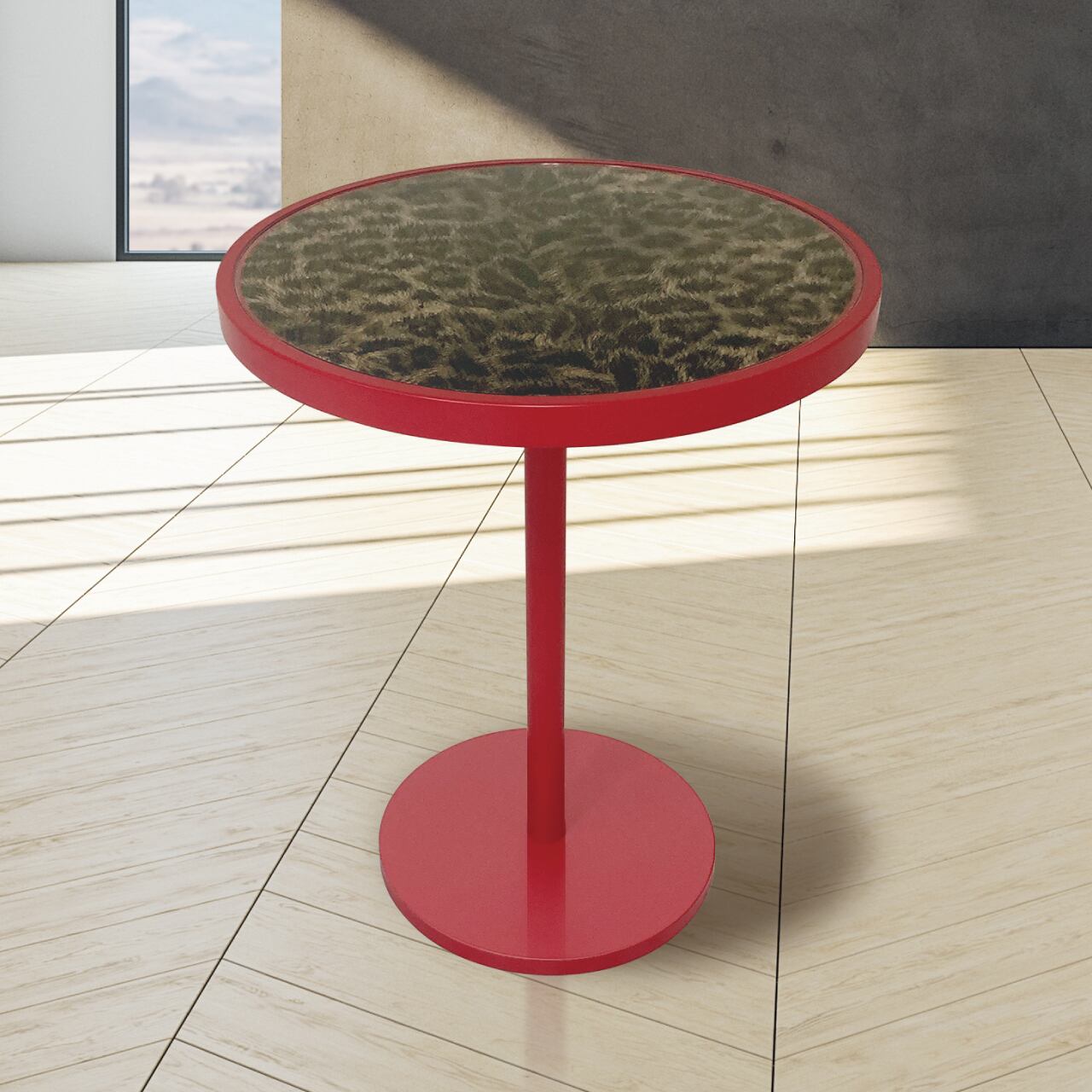 『お部屋の雰囲気を一新する、鮮やかな赤と豹柄の丸テーブルが登場!』
